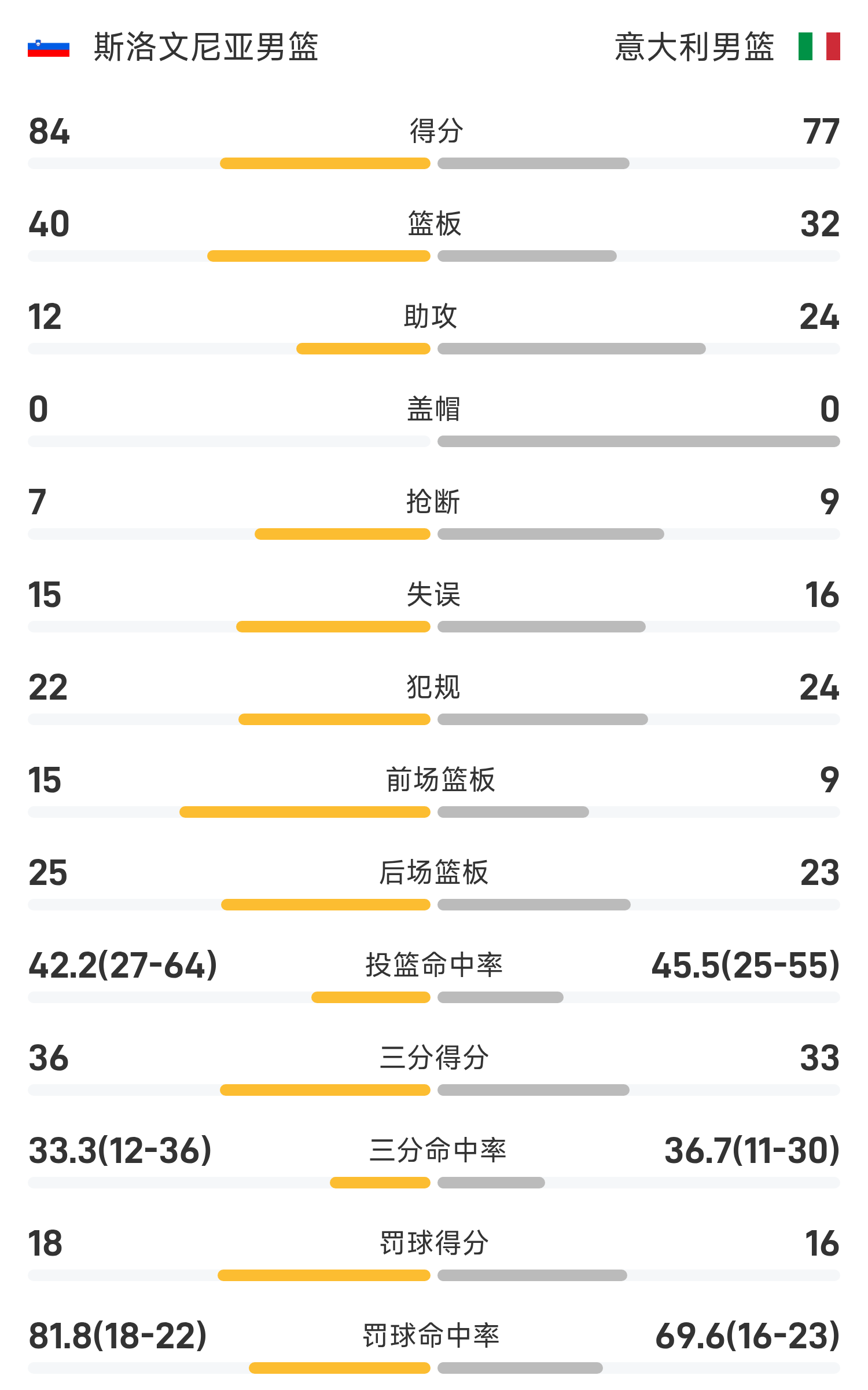 09月08日讯 男篮欧洲杯1/8决赛,意大利男篮对阵斯洛文尼亚男篮。双方全场战罢,意大利男篮77-84不敌斯洛文尼亚男篮。东契奇砍下全场最高的42分10板1助,率领斯洛文尼亚男篮成功取胜。